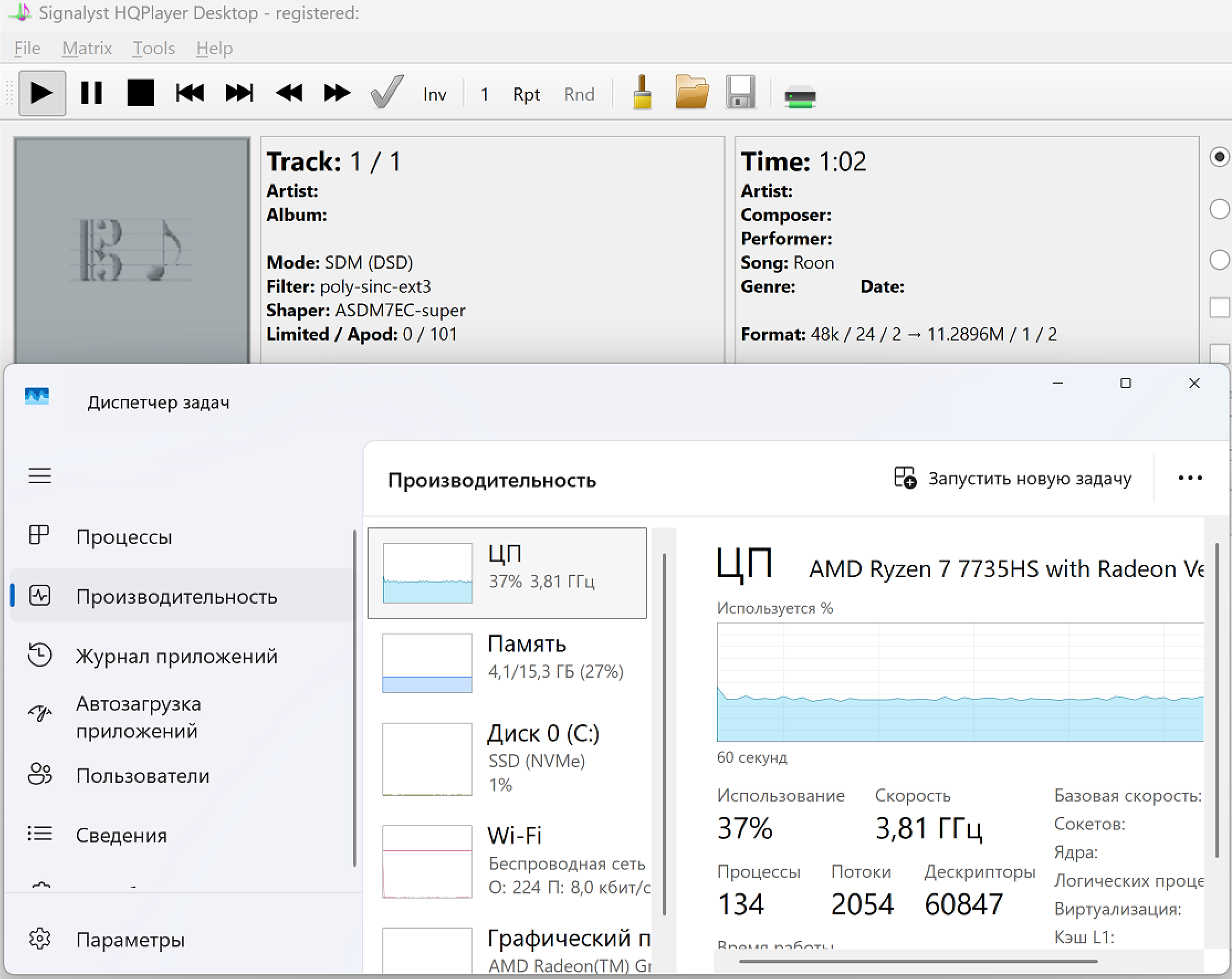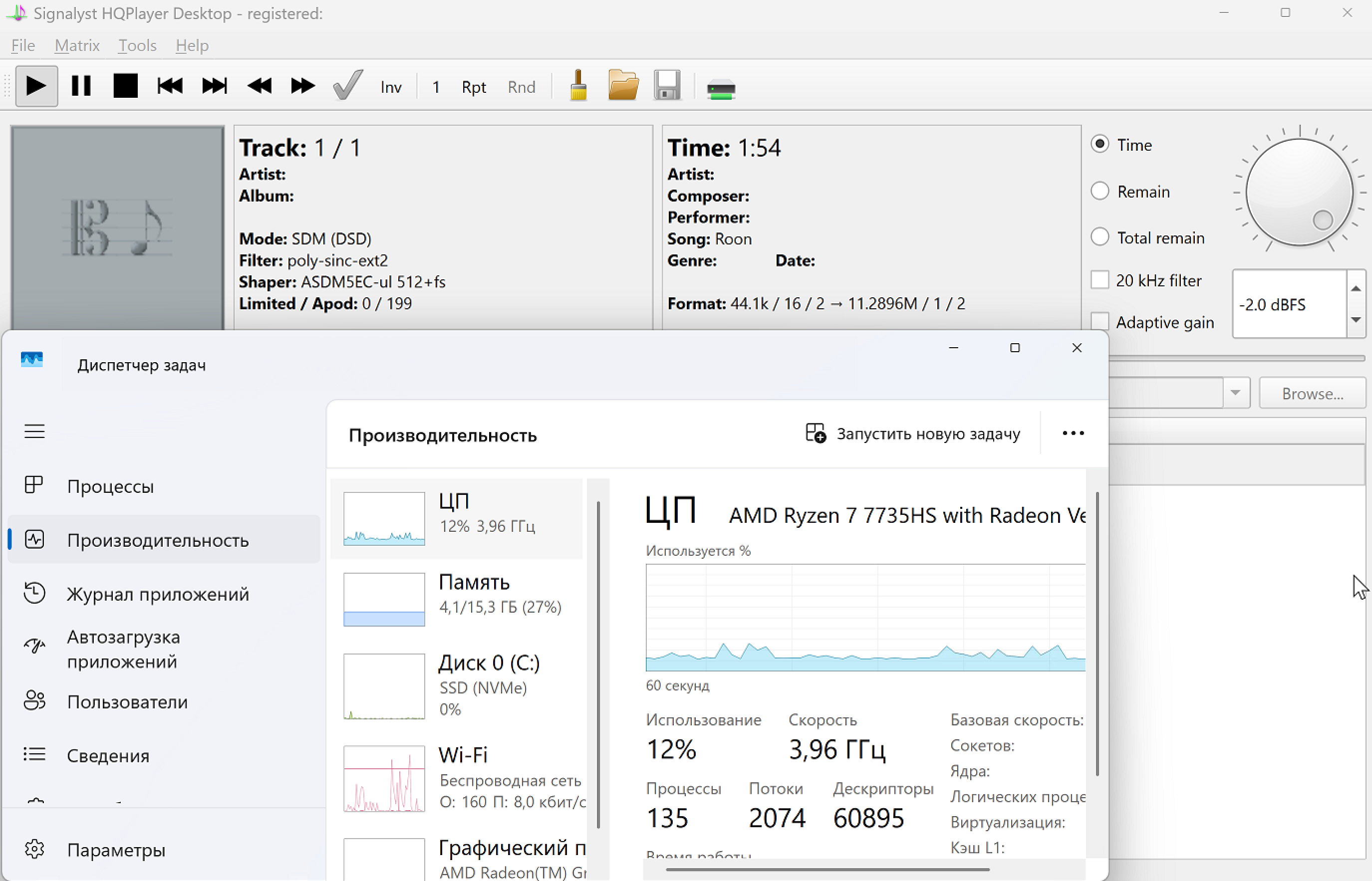 Сейчас меня интересует HQPlayer, его настройки. Пока глубоко копать не буду, первый вопрос о его РГ, мне показалось, что когда РГ стоит на максимуме (0дБ), то ЦФ попадает в цифровой клип. Инструментально я это проверить не могу, но на слух кажется что так. А понижать это терять в разрешении, я пока -1 оставил.