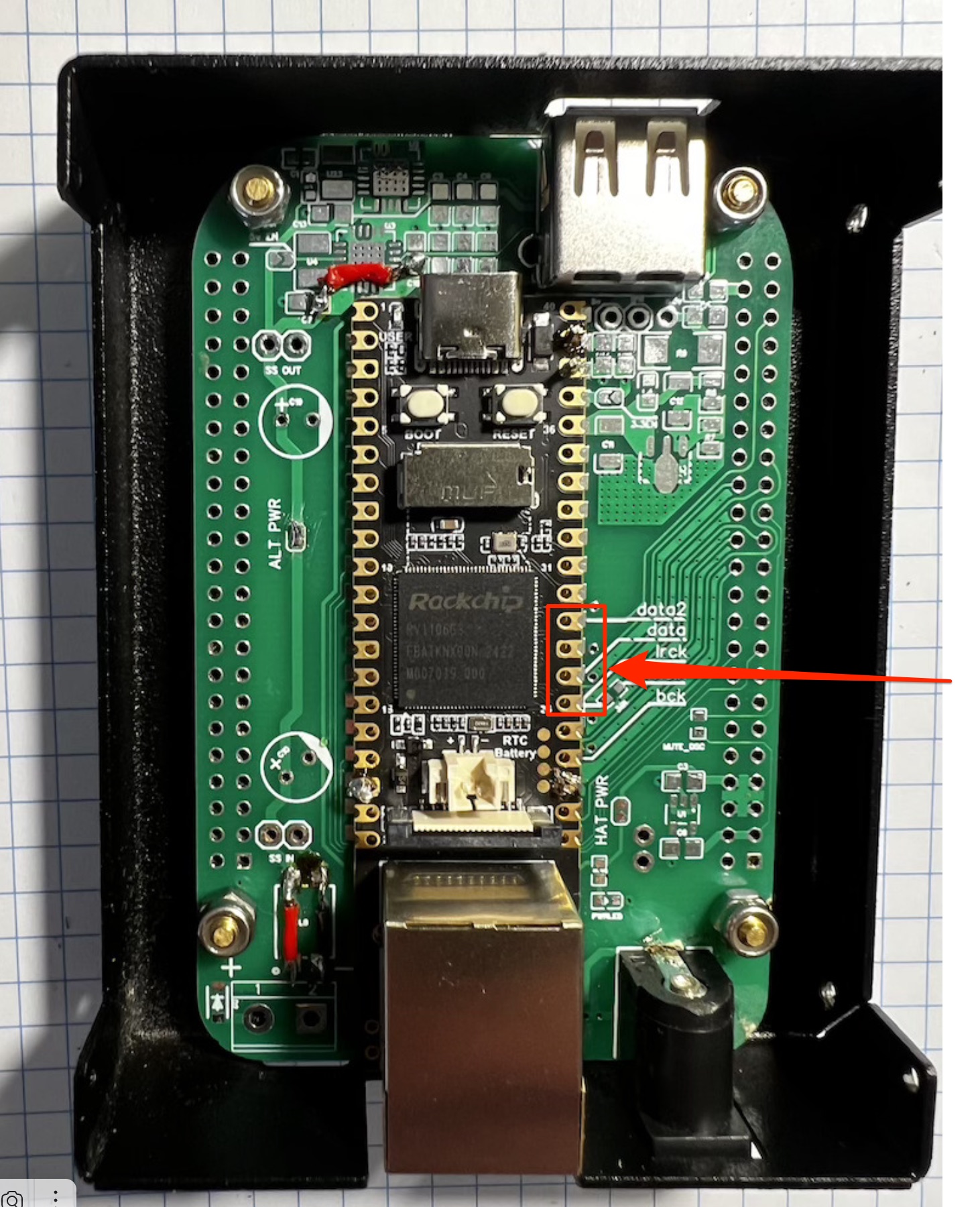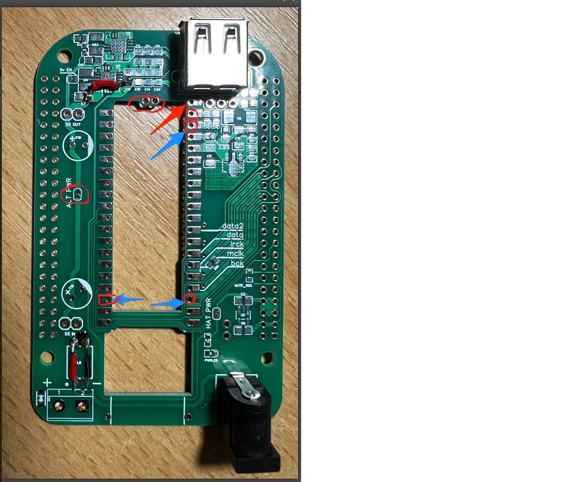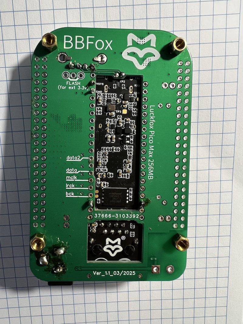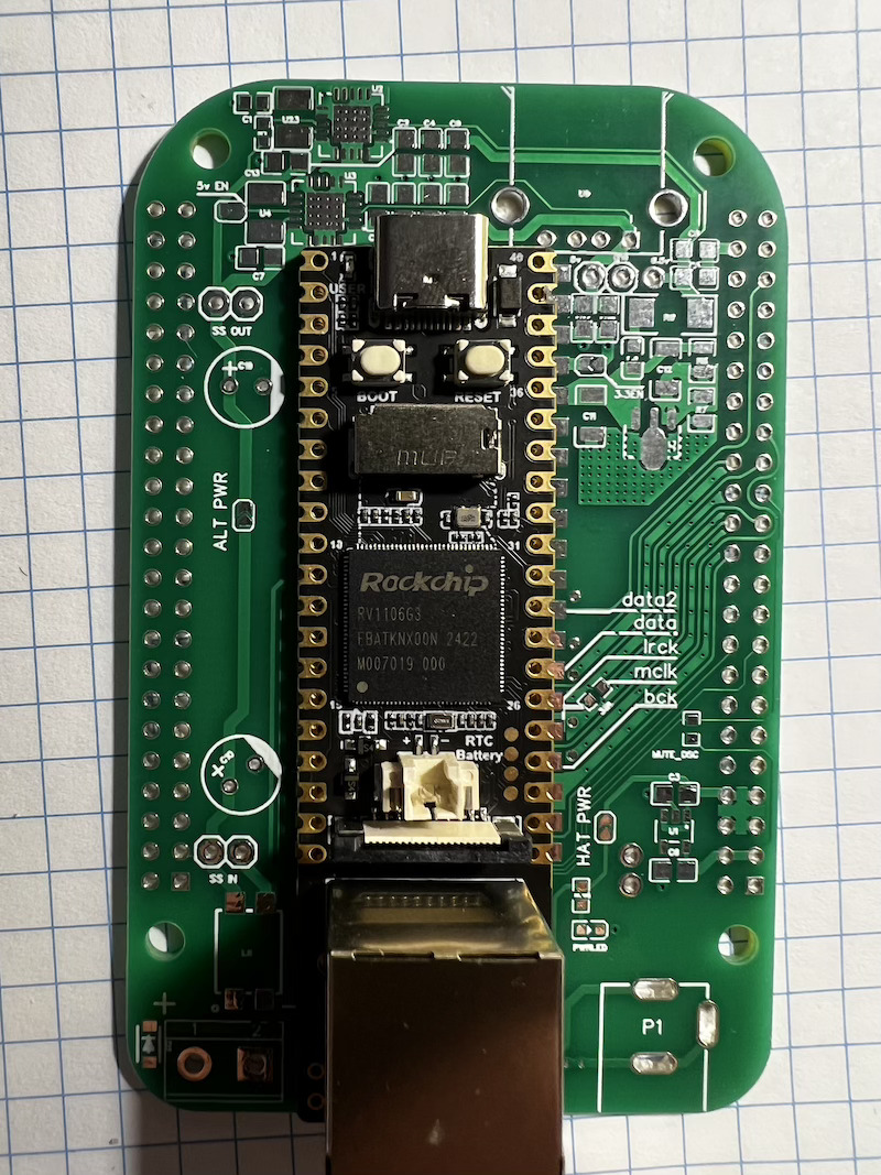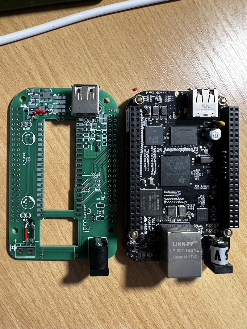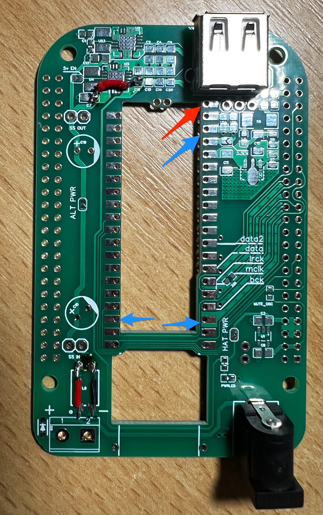 Для голой платы (без доп стабов и прочей красоты с питанием) Лев посоветовал распаять дополнительно I2S контакты, подать существующее питание 5 В.