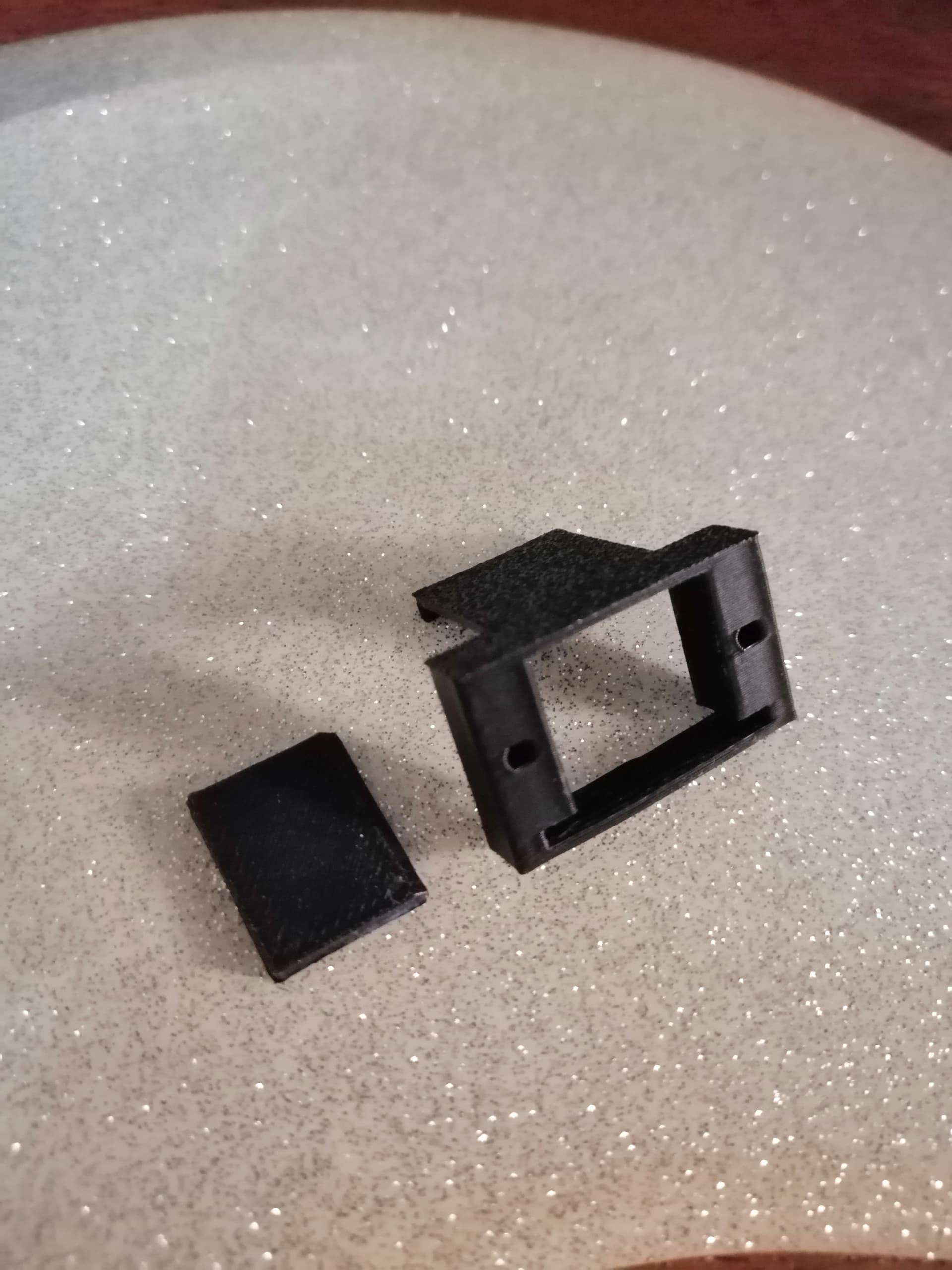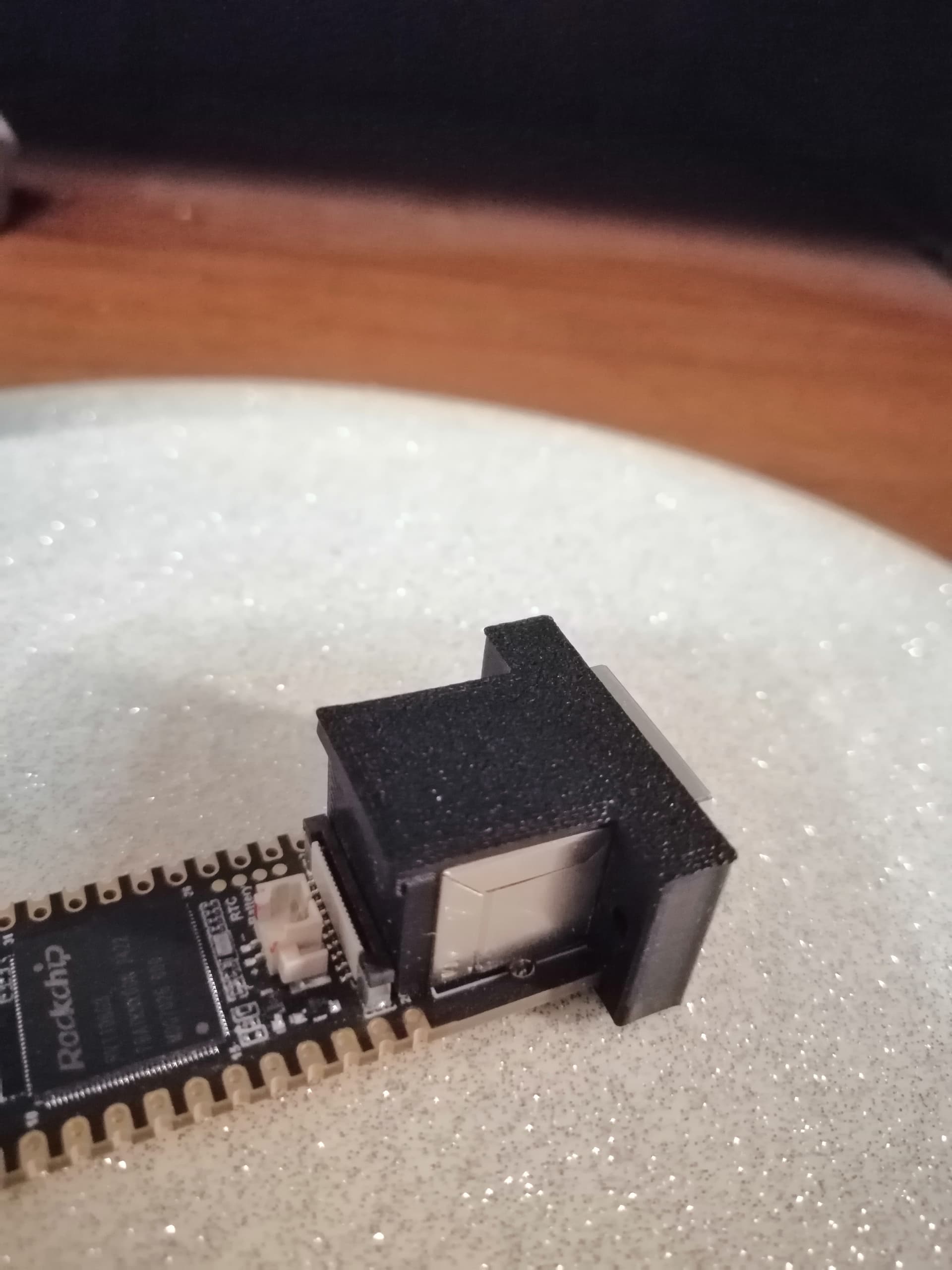 Валентин, спасибо за проделанную работу и выложеннные “исходники крепежа”. Съездил к товарищу у которого есть Bamboo и распечатал Ваш проект. Точность изумительная, я в этом ни бум-бум, но спец сказал, что без нескольких итераций не обошлось. Время было ограничено и с наскоку изменения в Ваш файл внести не удалось( ну чтобы разъем торчал на пару мм). Не получилось в файле (правильно), так сделаем ножовкой. Пришлось сделать доп прокладку. Получилось так…