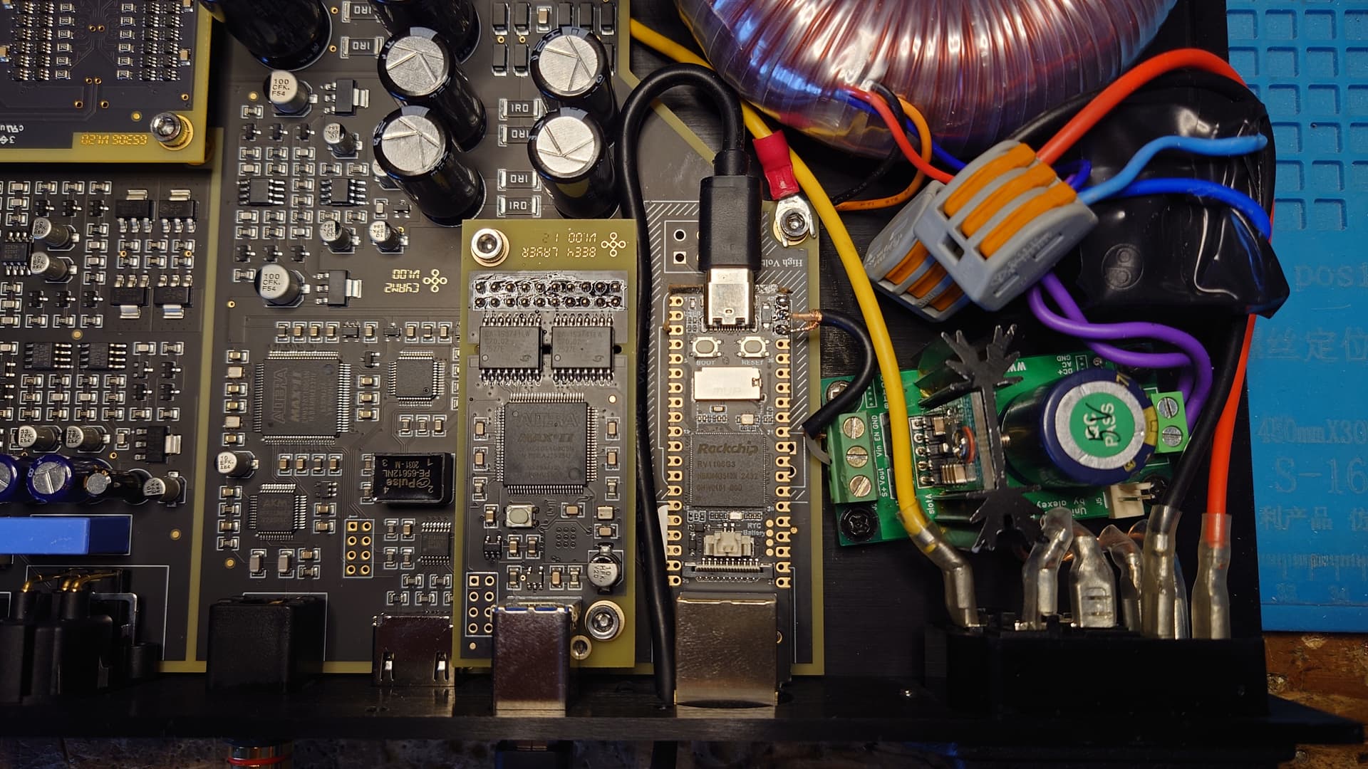 Появился тут у меня Holo Audio Cyan2, ну и как тут удержаться, и не вкорячить туда лиса? Влепил его вместо ненужного аес\неебу, попутно выкинув переключатель 220\127 и разъемы подключения 220 к трансу.