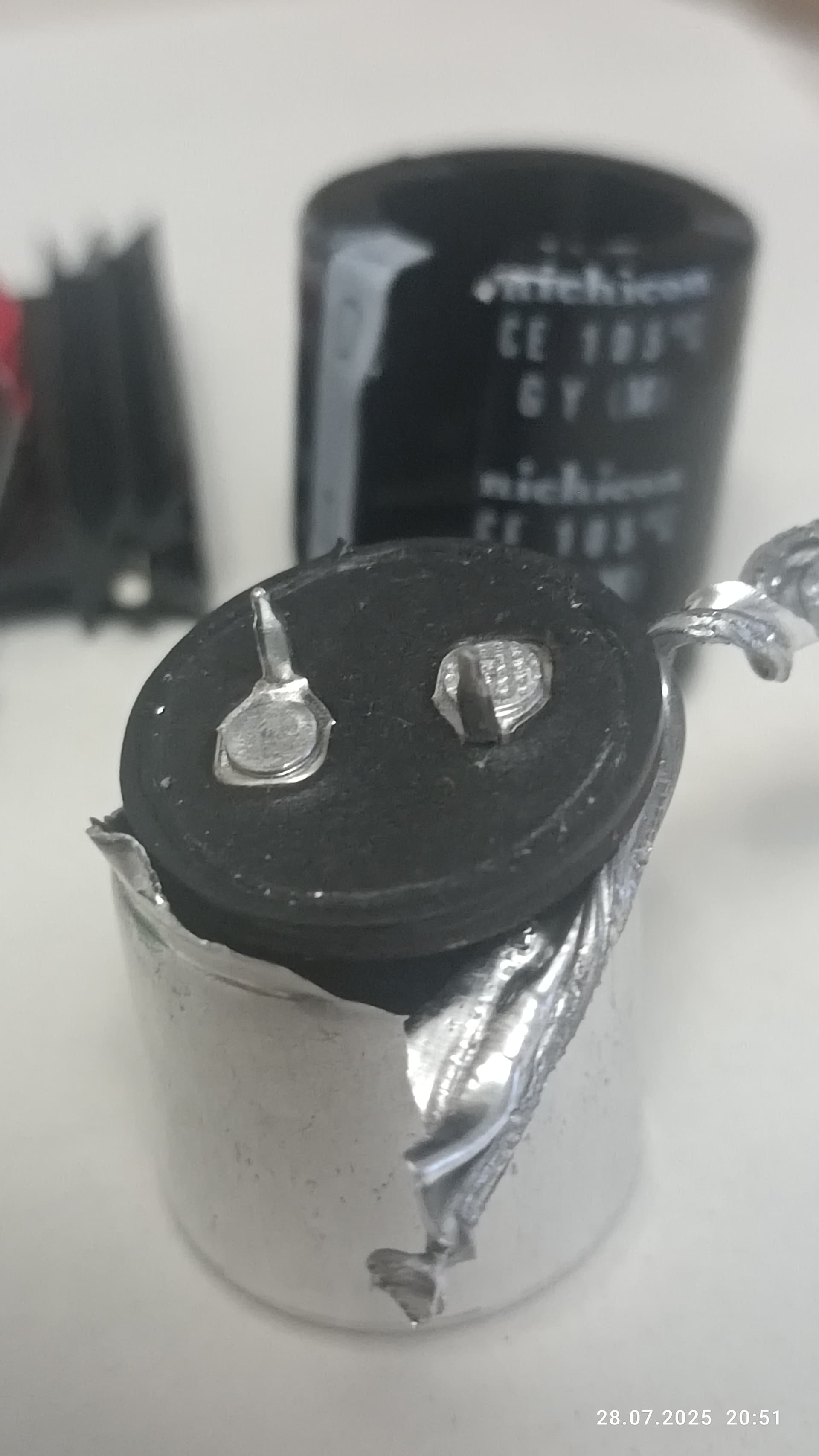 смущало изначально в большом cap (набор для пайки), то что при горизонтальном положении на плоскости в момент его “перемещения” в доль оси - кондесатор всегда стремился остановиться в одном и том же положении. это навело на мысль ,что внуренности в неотцентрованы.
