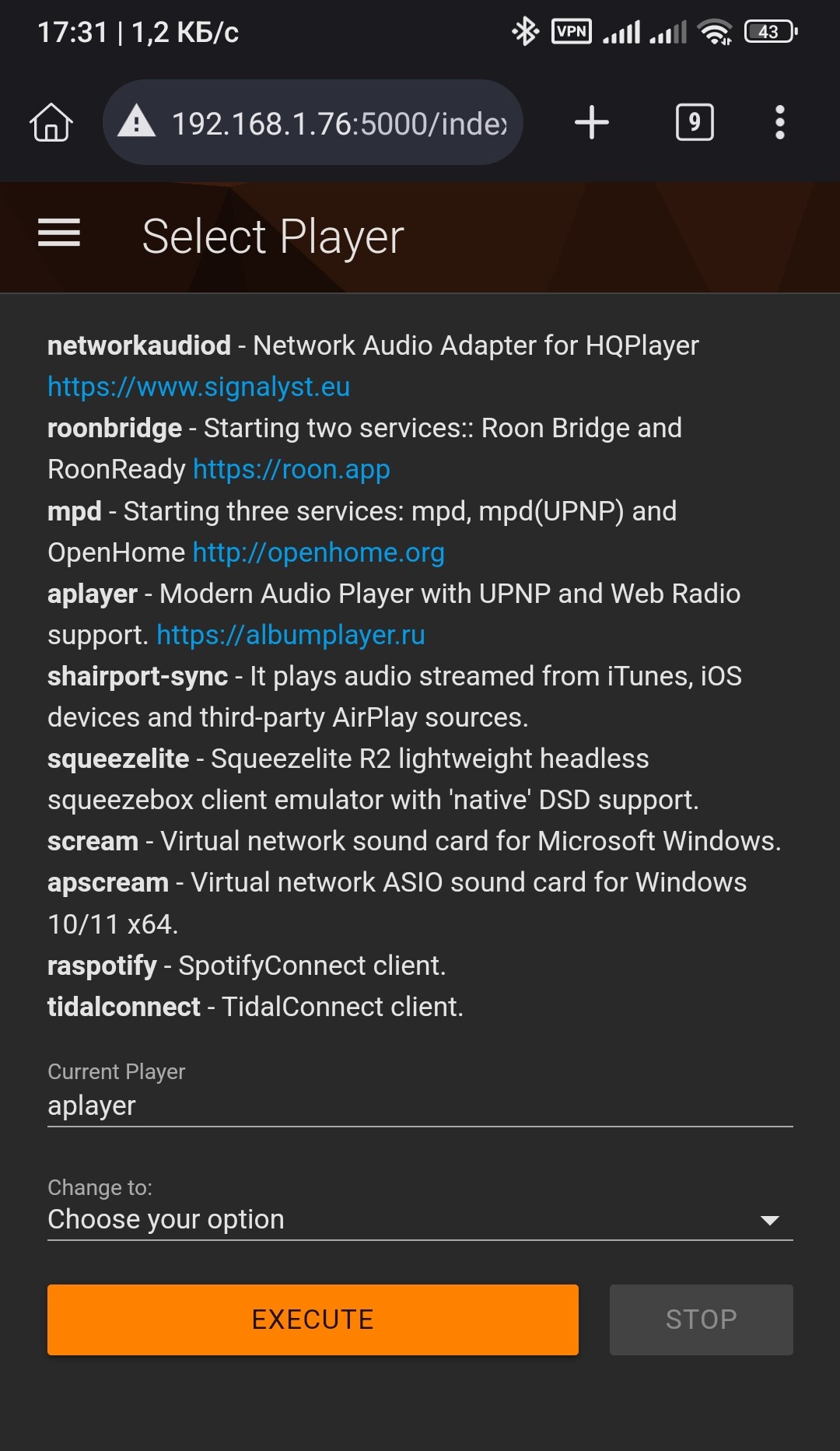 У меня так, потому что я через рендер слушаю, а у вас должен быть запущен squeezelite.
