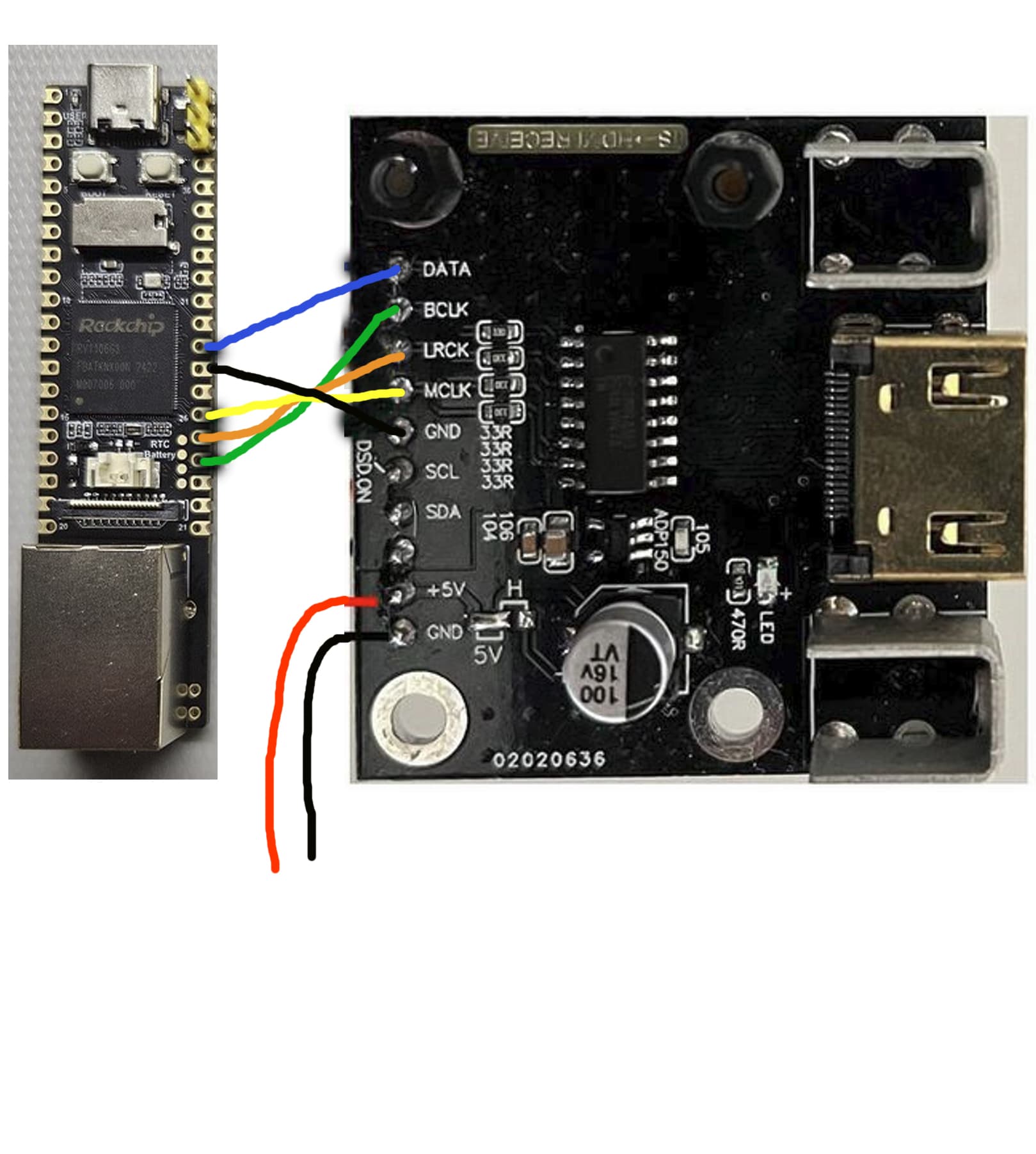 красным - опто\гальваноразвязка i2s линий + clock