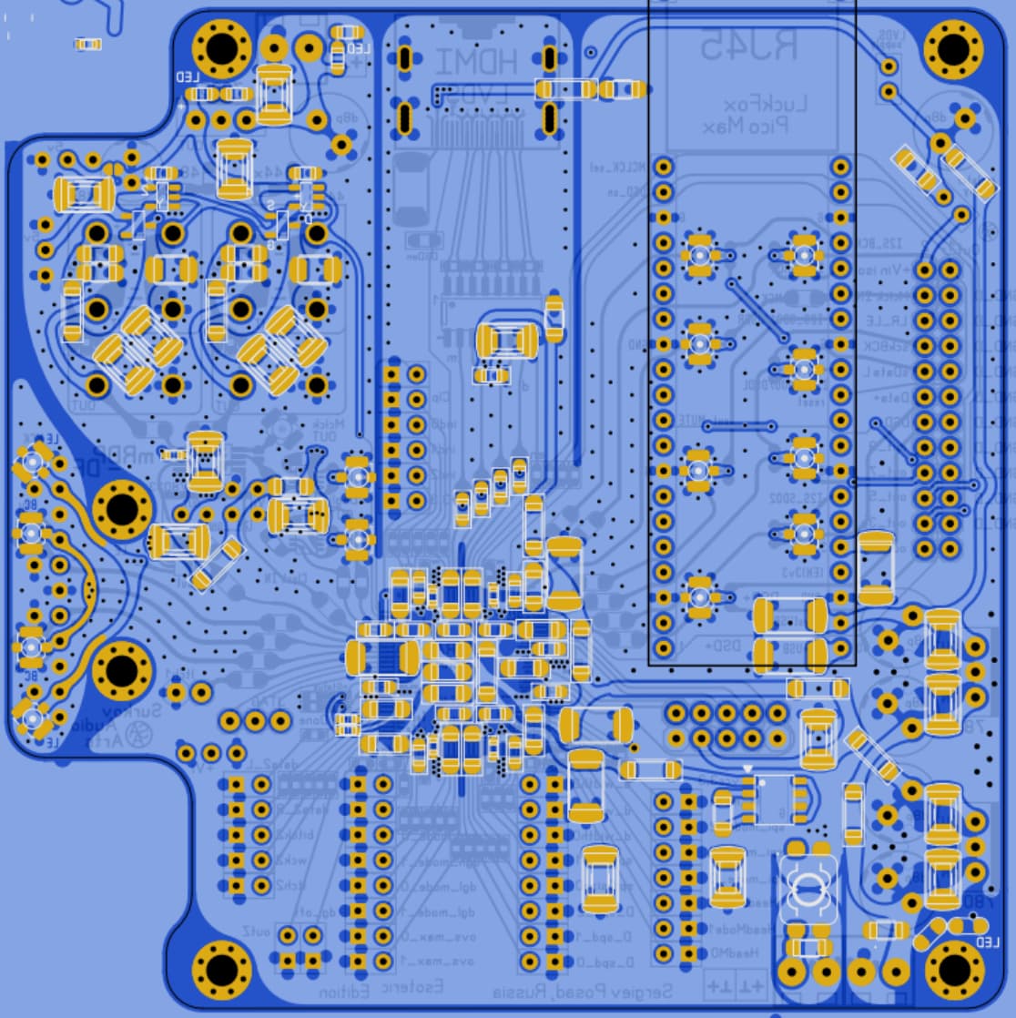 плата задумывалась как надстройка с небольшим заходом вторым этажом над платой ЦАП, но есть и места под универсальные разъемы u.fl популярные у западных коллег. Места занимают минимум, а возможности существенно расширяют.