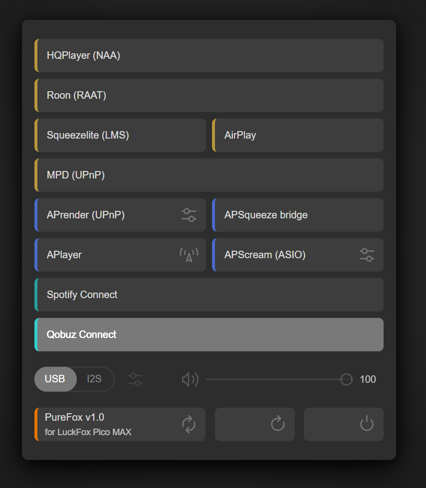 Выходы I2S или USB - переключение в веб-интерфейсе