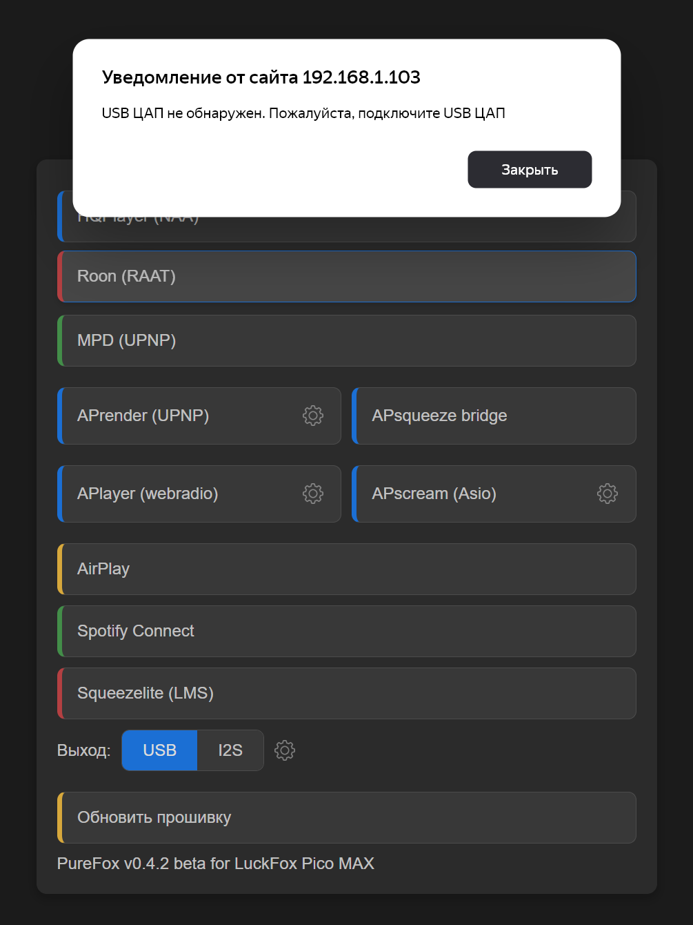 Виноват Roon Ready.