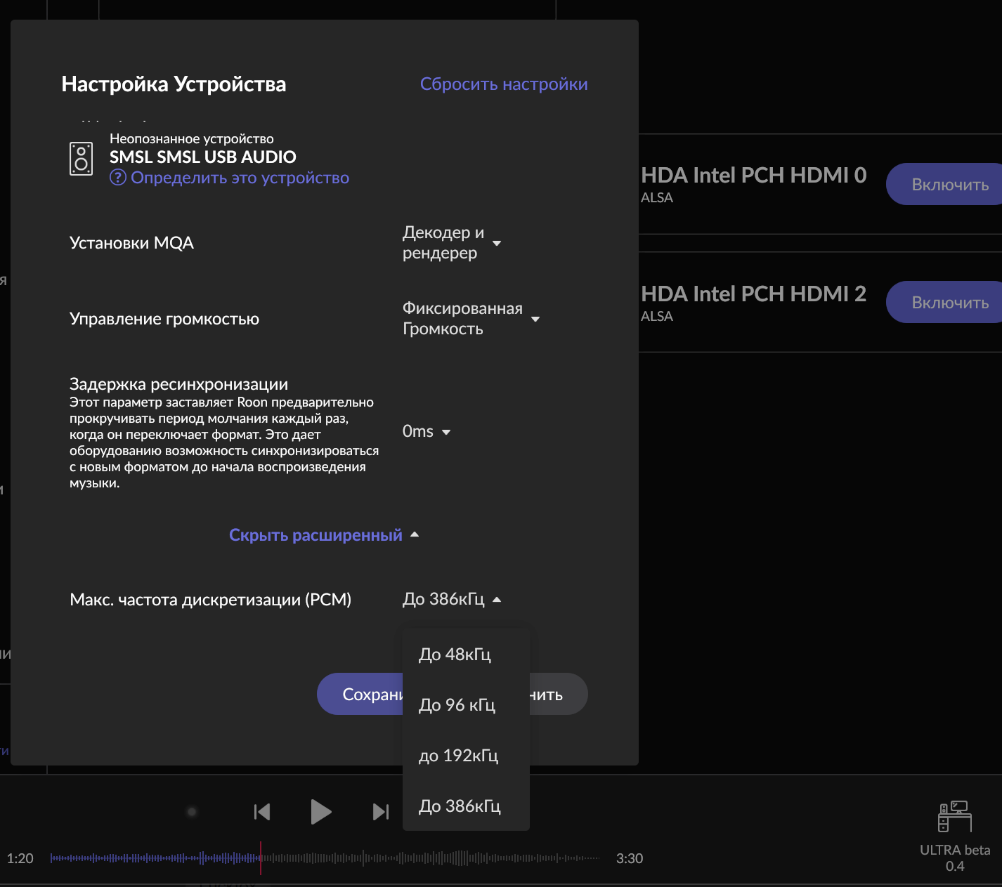 А максимальную частоту какую у вас рисует Roon для Лиса в настройках точки?