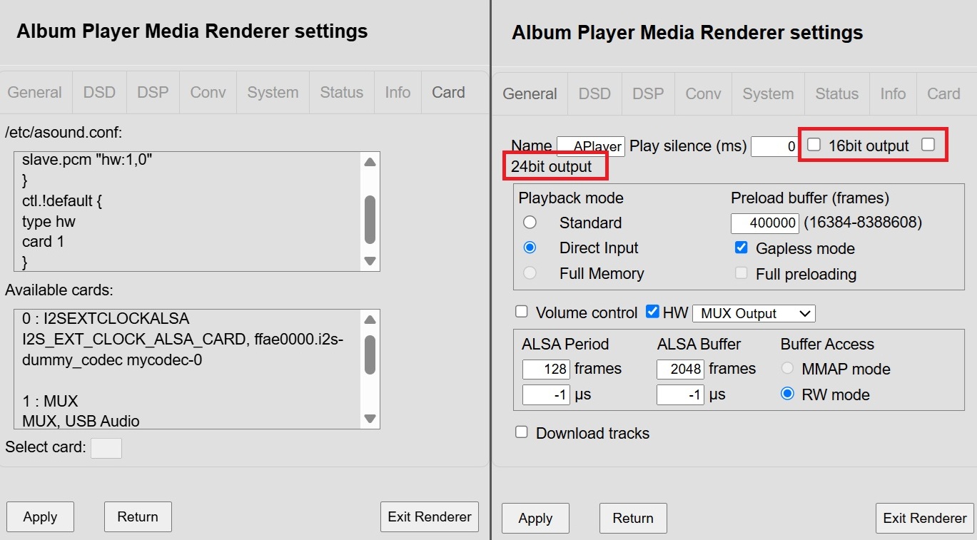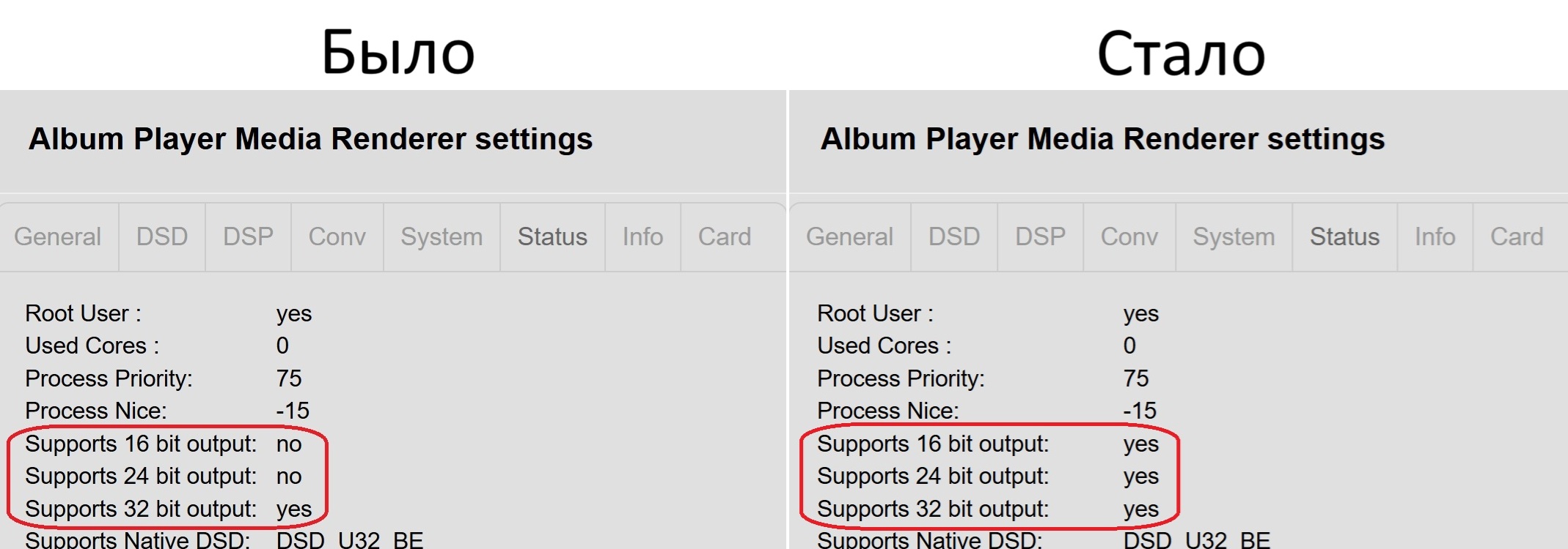 А отображение 16 bit & 24 Bit вывода появлялось только в случаях если во вкладке Card звуковая карта либо не выбрана, либо слетела. Но сейчас при USB выводе звуковая карта выбирается автоматически и во вкладке Card отображается верно. Звук идёт. Поэтому не понятно с чем связана моя ситуация.