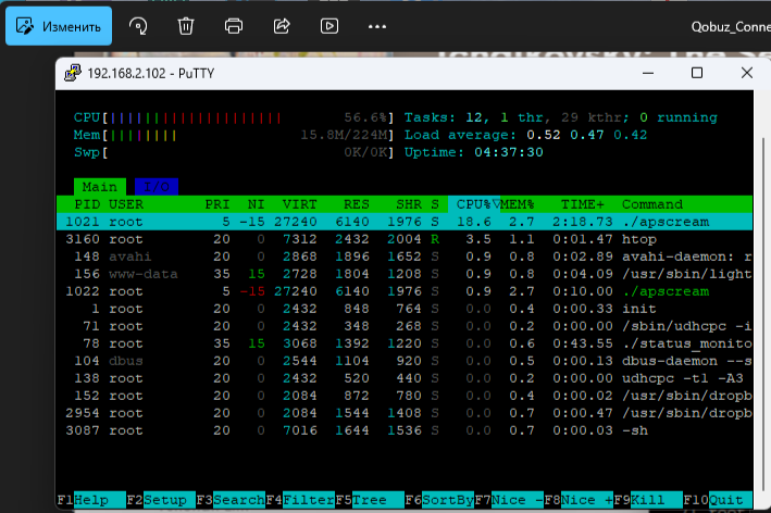 Mconnect на рендерер Scream. Воспроизведение очень редко прерывается (особенно в начале трека) на секунду и снова играет дальше. В принципе все норм. Загрузка процессора 45 - 57%
