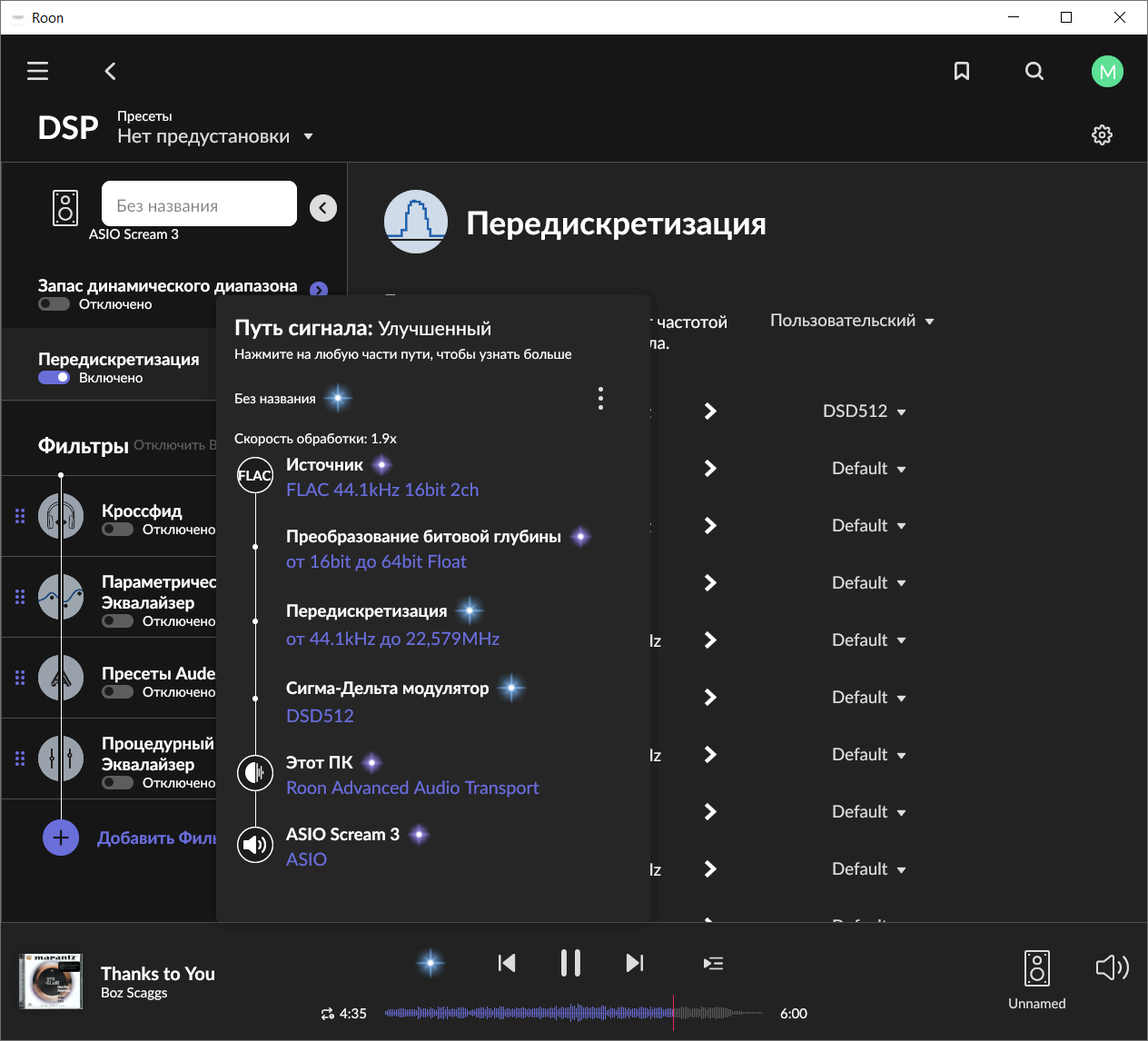 Кобуз на Qobuz Connect этот же файл 24/192 сейчас играет без затыков, загрузка проца 12 - 17 процентов.