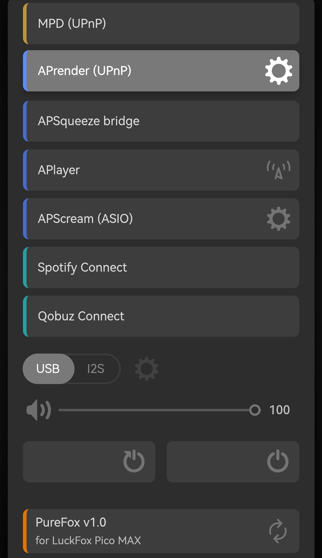 прошивка v1 + онлайн обновление . цап es9018 + luckfox (режим pll i2s 1024 + qobuz) .