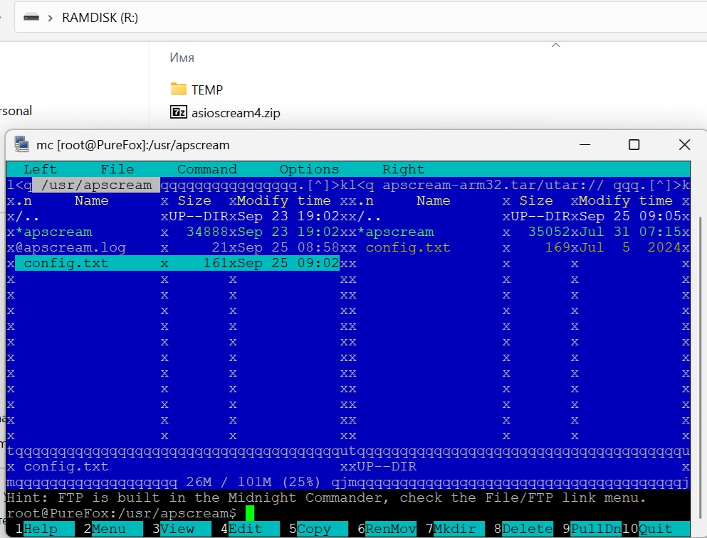 Паш, я не знаю что собирает Ваш бинарник, но вижу, что после чистой установки v.1.2 (утром по USB и только что через интернет) разница между установленным apscream и взятым с сайта Игоря имеется.