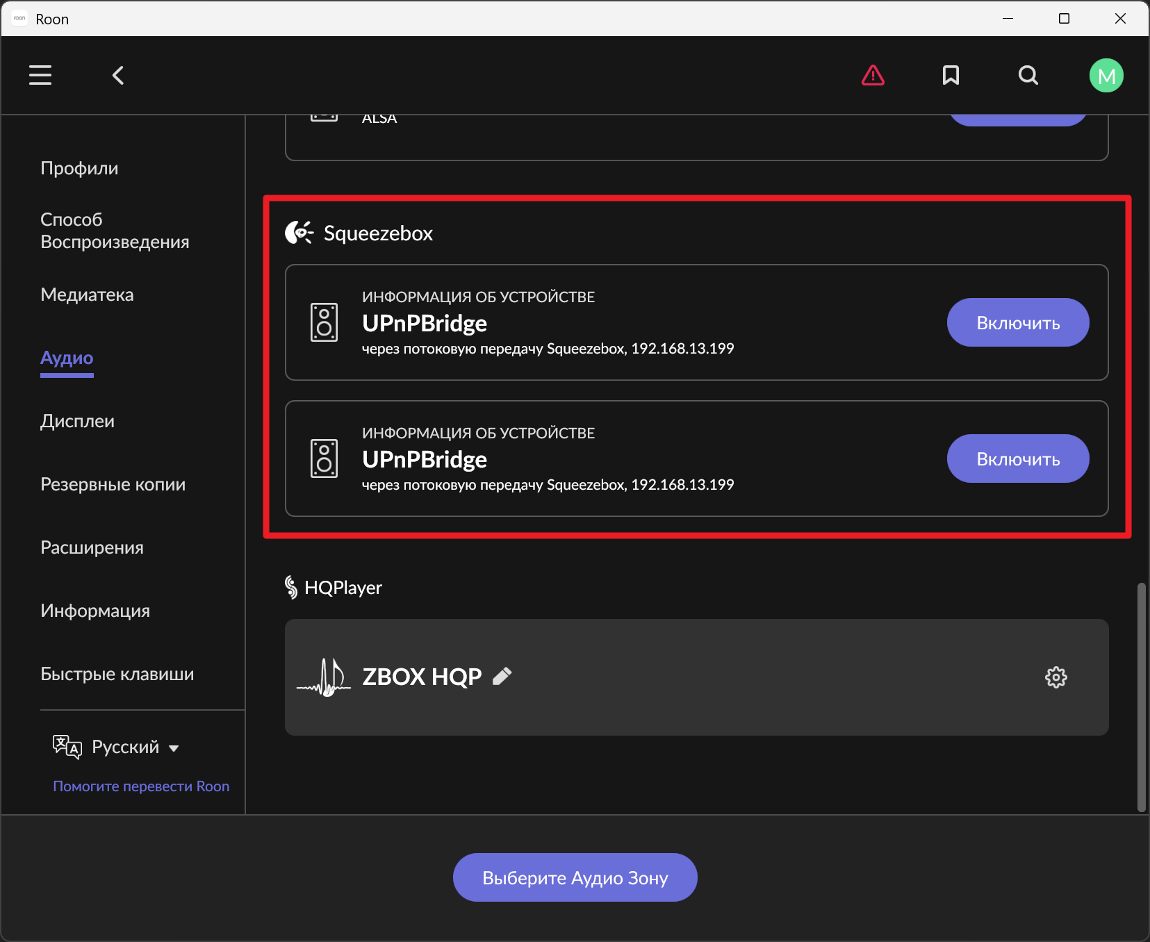Решил попробовать но у меня почему то два моста в Roon образовались на одном IP лиса (Ultra).