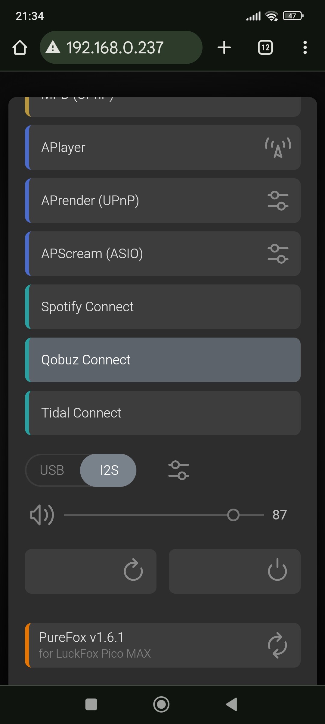 В веб интерфейсе тоже движок громкости не активен по той же причине.
