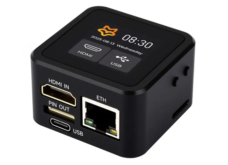 Устройство наделено сетевым портом 10/100MbE с разъёмом RJ45, интерфейсом HDMI, а также портом USB Type-C для подачи питания, программирования и эмулирования клавиатуры/мыши/USB-накопителей. Предусмотрен дополнительный I/O-разъём с поддержкой GPIO, UART, I2C и пр.