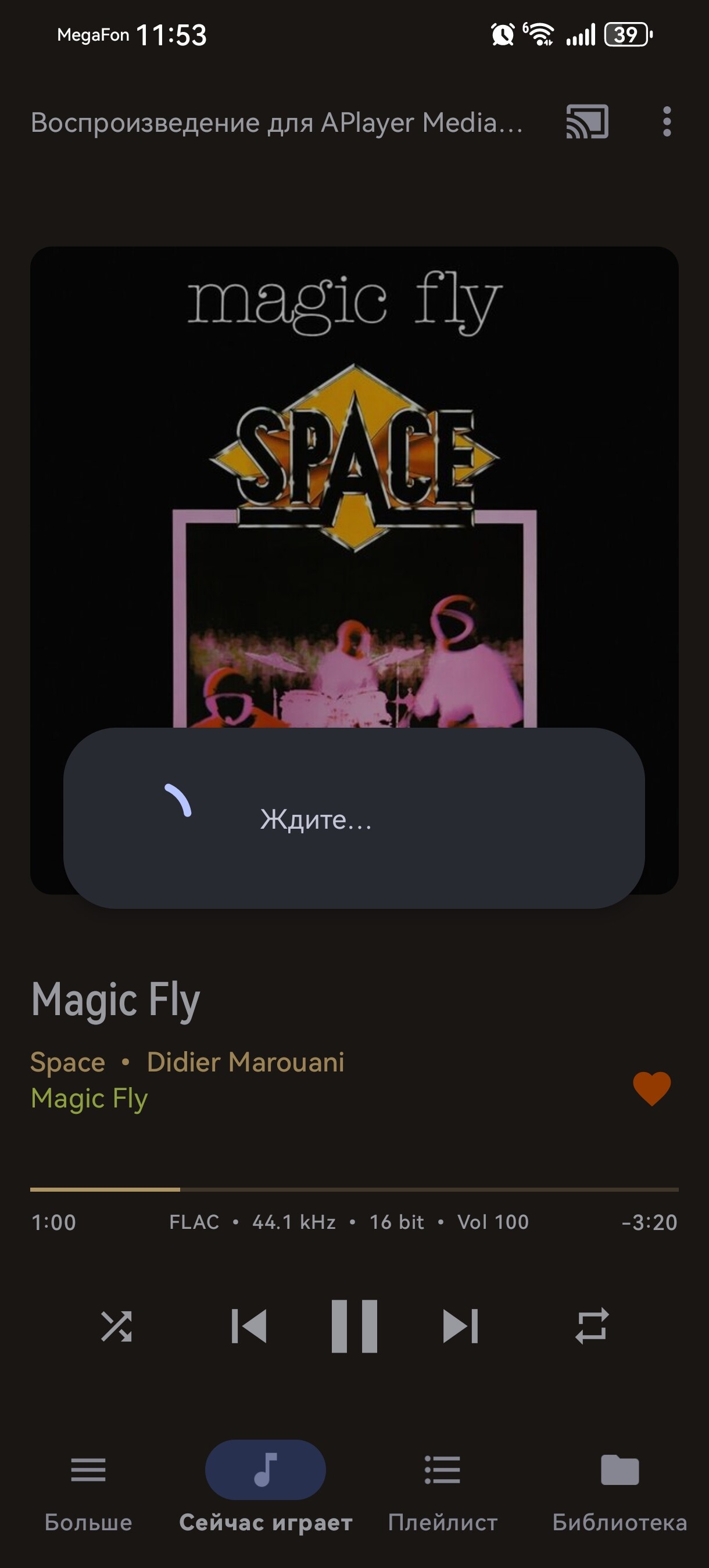 - Открываем Кобуз (или Я.Музыку или любой плеер) и просто запускаем воспроизведение. Аудиокаст всё начинает транслировать на рендерер Aplayer.