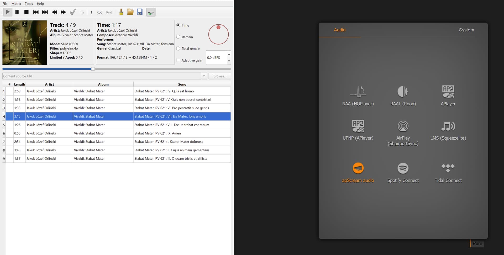 - Любым доступным способом запускаем длинный трек 44.1/24 через заранее активированный АПРендерер.