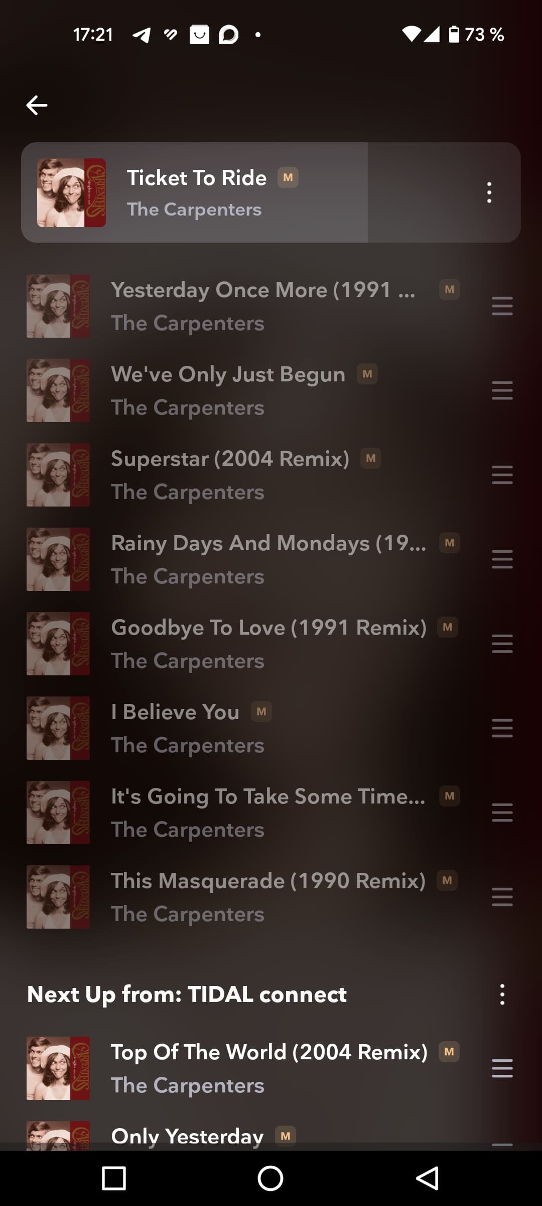 С утра погонял Тидал коннект. И на 78 , и на свежей 84 версиях Тидал. Вроде все корректно. Плейлисты играет, песни переключаются в ручную и автоматически, проматываются. Частота на ЦАП переключается. Единственное-индикатор MQA на ЦАП стал светиться пурпурным цветом (что означает-рендер MQA вроде). Раньше светился либо зеленым, либо фиолетовым. Через Мконнект и MPD светится только зеленым или фиолетовым. На одном альбоме Норы Джонс через Тидал коннект частота 96 кГц, на этом же альбоме через Мконнек и MPD высвечивается 192 кГц. Пишу не ради холивара про MQA, а про то, что имею по факту. Как правильно должно работать-не знаю. Но через Тидал коннект звук посветлей, попрозрачней чем через Мконнект. Субъективно интересней.