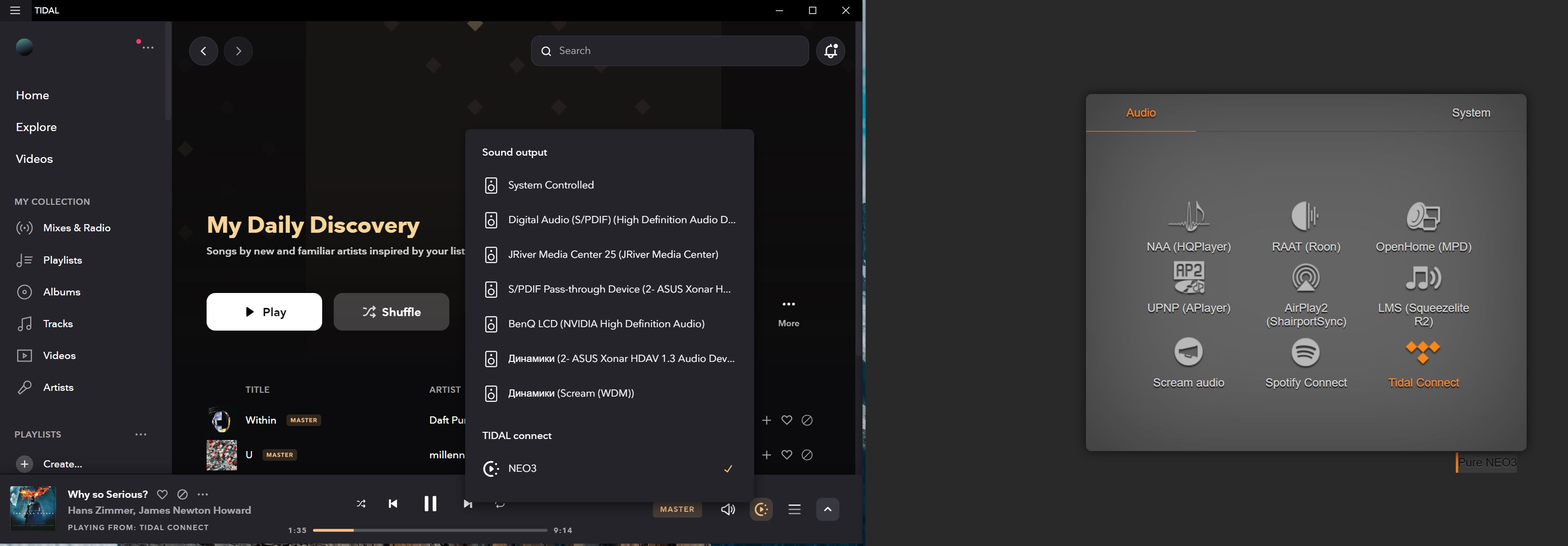 Конечно, Roon и Aplayer работают. Но самое смешное - сейчас попробовал и тидал отлично работает