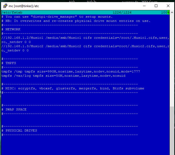 У меня 4 тома разной музыки на NAS. Если их последовательно монтировать в script-server PURE - MOUNT CIFS, то после каждого монтирования, предыдущая строка монтирования, в файле /etc/fstab, затирается текущей монтируемой и в итоге из 4х монтируемых томов в файле /etc/fstab остается один последний монтируемый том.