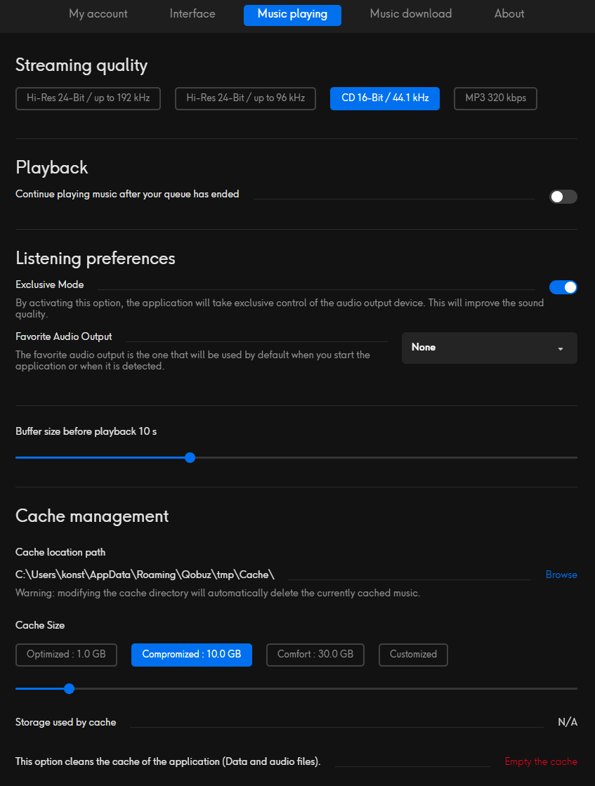 Покажите настройки родной программы от Qobuz, из которой ведется вещание.