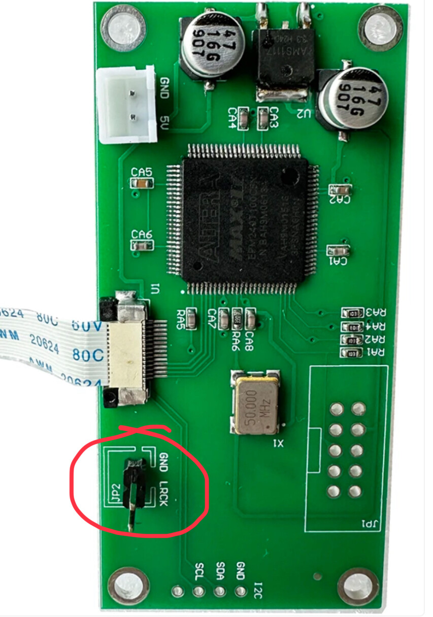 если с источника (например Фокса) подать на платку этого дисплея 5В (можно и внешнее питание) и на разъем JP2 сигнал LRCK с источника (например с того же Фокса) и GND, то все будет работать, т.е. будет отображаться частота дискретизации сигнала?
